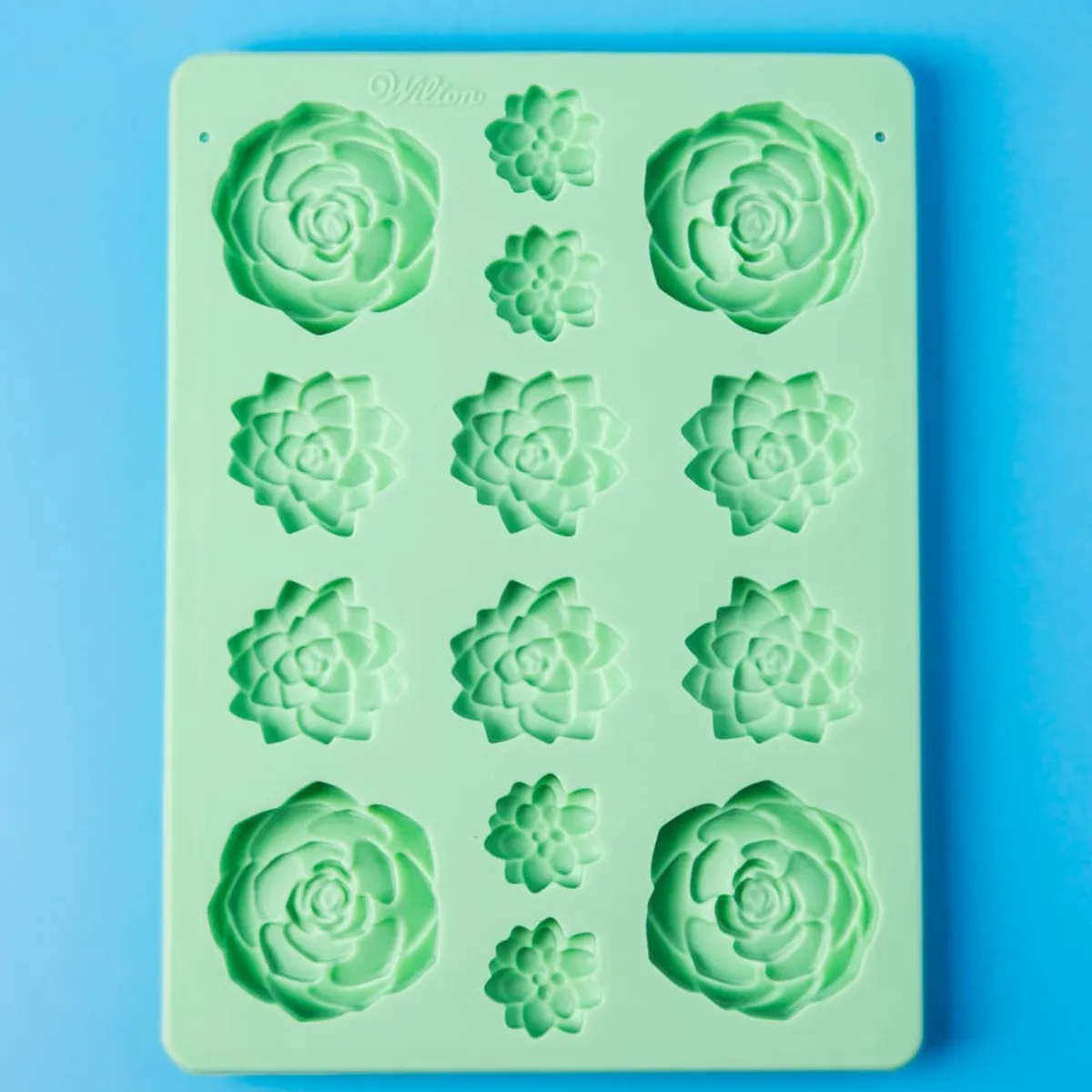 Silicone mold- 14-cavity succulent design. For making succulent shaped wax melts and embeds soap and candles. Silicone allows for easy release. Overall Mold dimensions: 8.57 x 6.34 in. (21.7 cm x 16.1 cm); cavities: 0.41 in. (1.04 cm) deep. Overall capacity 5.2 oz. Cavity sizes vary.