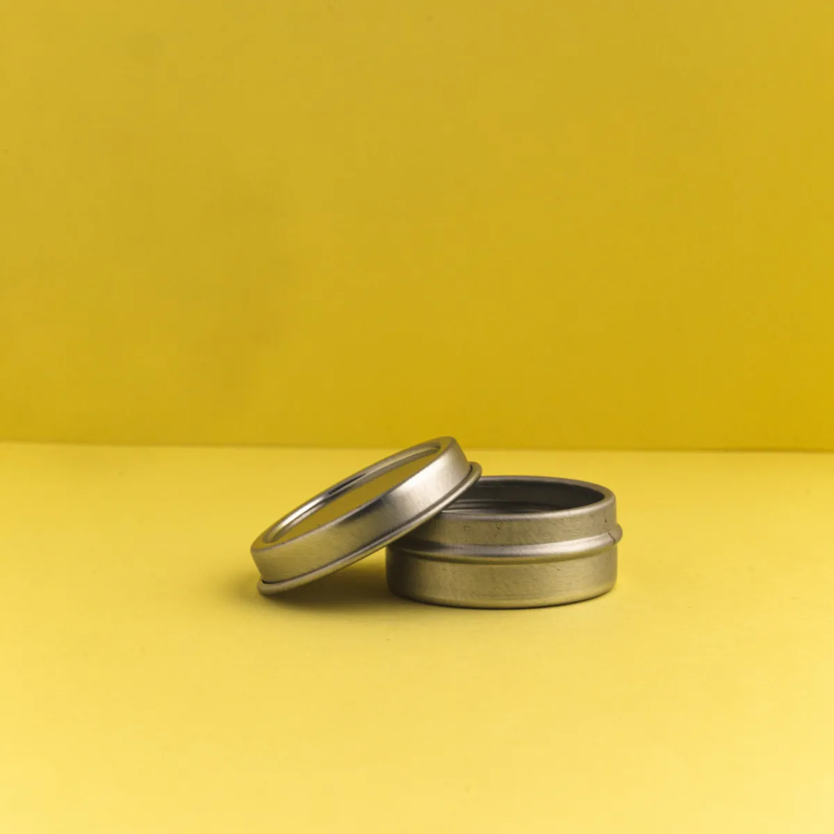 Sold in units of 10 bases and lids. Each unit is capable of holding 0.25 oz. of lip balm. Made of tin-plated steel.